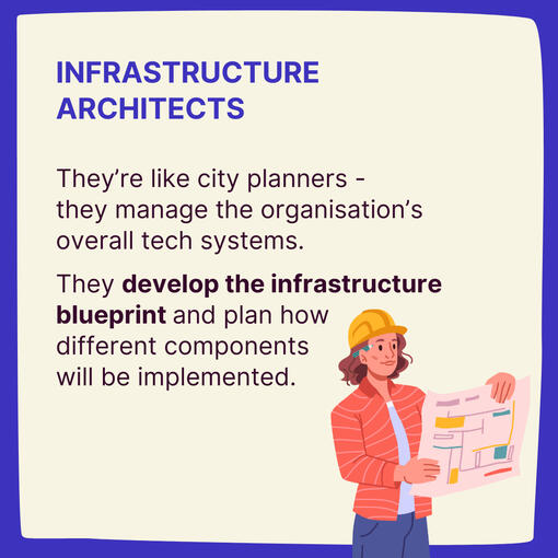 This is the backbone of a company’s technology – the digital networks and systems that keep everything running seamlessly. It’s what allows all other digital operations to function.Here are some infrastructure-related careers!